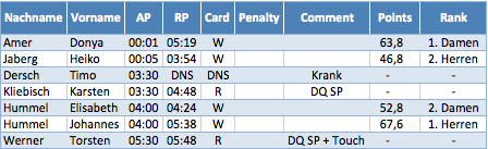 Und ein ganz großes Dankeschön an unseren Organisator und Main Judge Malte Brümmer sowie dem ganzen Team: Barbara Jeschke (Judge), Dagmar Andres-Brümmer und Holger Schlepple (Safety), Franz Brümmer und Martin Grigo (Kamera).